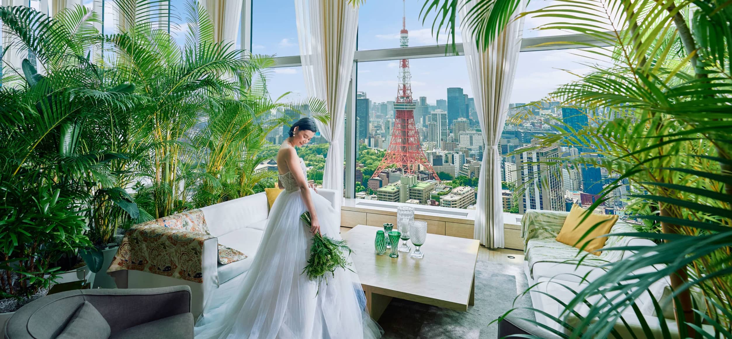 都会と自然が調和する天空の舞台で心躍るセレモニーを。地上140mのテラスから望む、東京タワーと息を呑むような絶景、豊かな緑と光に包まれて愛を誓う時間は、特別感と心地良さに満ちた一生の思い出をふたりに残します。