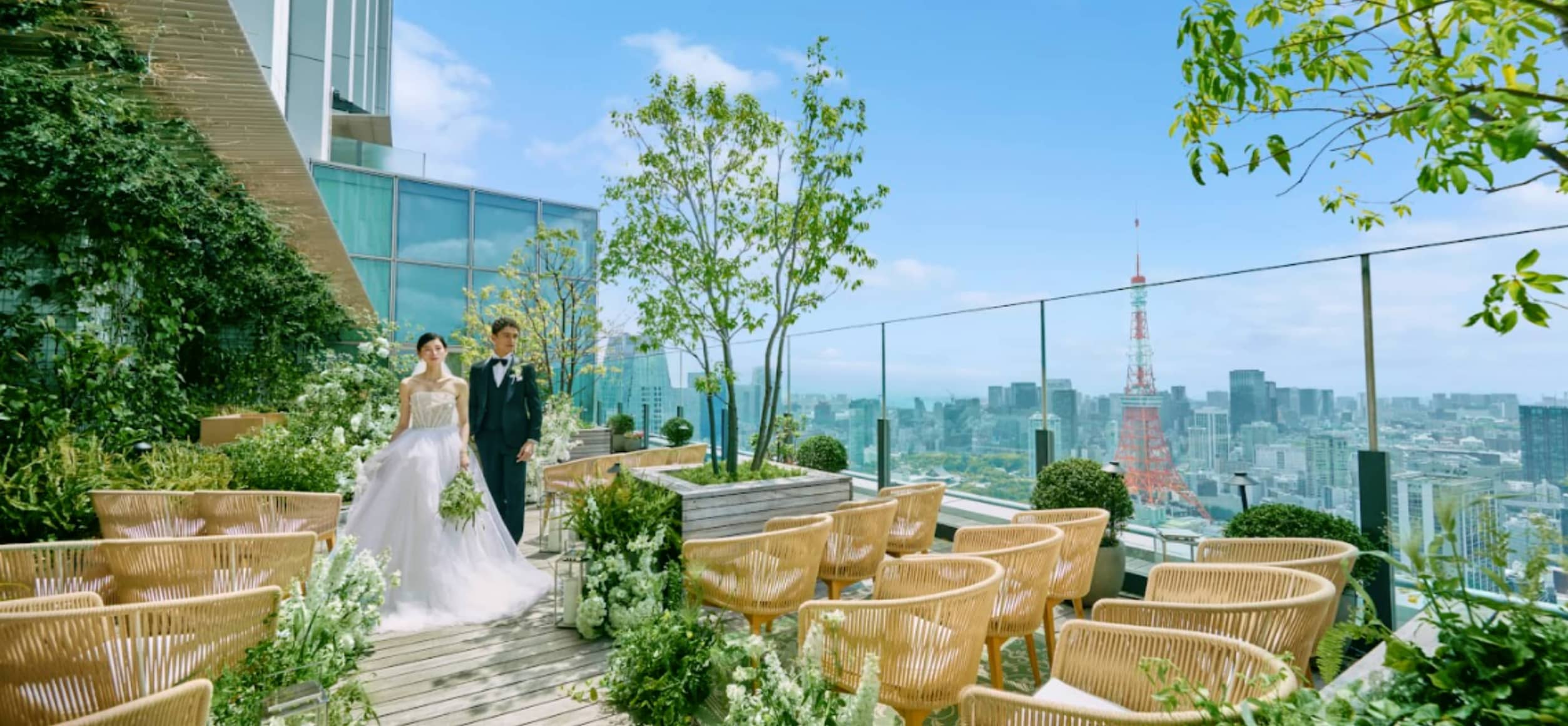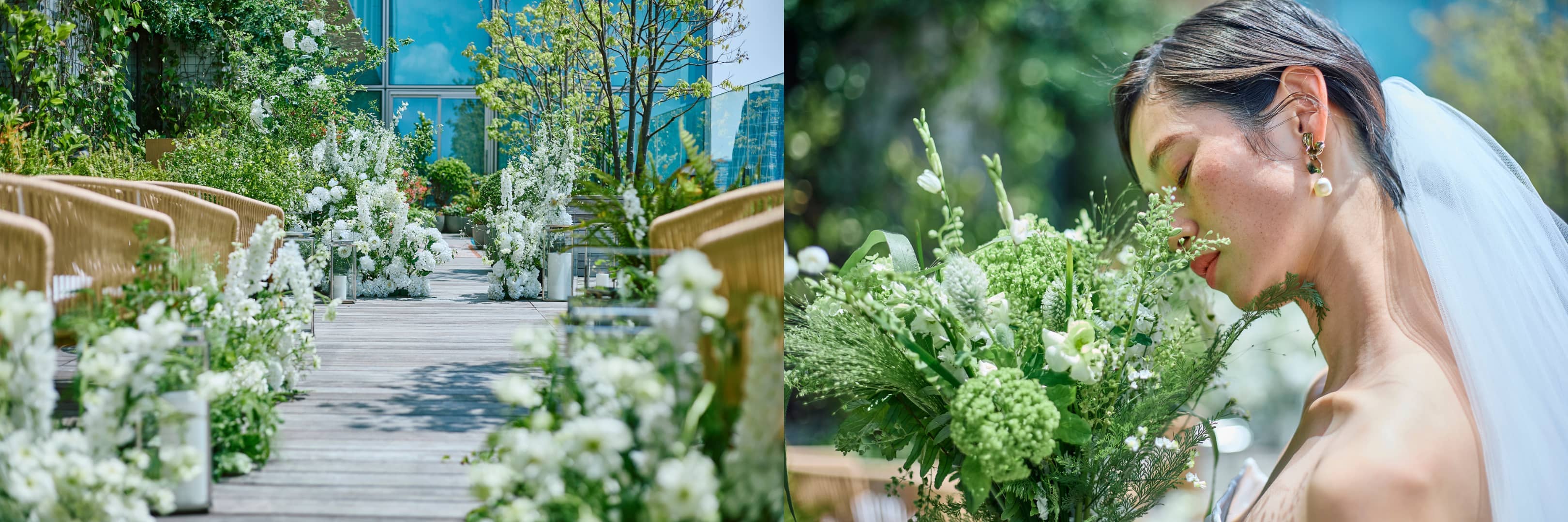 東京タワーを望む圧倒的なロケーション。空・風・光を感じながら誓うセレモニーは、都心とは思えない心地よさと非日常感に包まれます。ガーデンテラスからそのまま披露宴会場へつながる導線も魅力。